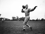 Clyde May is the quarterback on the Diamond Hill High School football team. He will handle the passing chores, Thursday when the Eagles play Handley High School at Farrington Field. The winner of the game will be the District 14-A champions. May is shown passing the football during practice. He is dressed in a practice uniform.