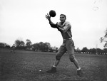 Bill Murphy is an end on the Diamond Hill High School football team. He is the Eagles' top pass receiver and will be a key piece Thursday when the Eagles play Handley High School at Farrington Field. The winner of the game will be the District 14-A champions. Murphy is shown catching a football in stride during practice. He is wearing a practice uniform.