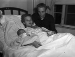 Mr. and Mrs. P. G. Mercer with their infant son. Mrs. Mercer is lying in a bed with her son next to her. Mr. Mercer is standing at his wife's side.