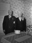 Wedding Anniversary; Celebration; couple; Cake; Suits (Clothing); Eyeglasses