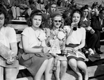 Texas Christian University (T. C. U.) vs. Rice University football game spectators (left to right) Betty Stymer of Houston, Texas; Betty Minyard, Fort Worth Texas and Ann Murchison, Grapeland, Texas.