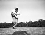 Aubrey "Red" Phillips is a halfback on the Paschal High School football team. He is preparing for the upcoming Thanksgiving night classic against the unbeaten North Side Steers. At 190-pounds, Phillips is the Panthers' best power runner. He is shown running the ball during practice.