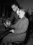 Joseph L. Egan (standing) of New York City, president of Western Union and G. N. Westerfeld, local superintendent.