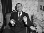 W. O. Ash is an assistant yardmaster for the Texas Pacific Railway. He has spent more than thirty years on the job and has never once been late to work. Credit for the streak goes to his trusty timepiece. The pocket watch was once owned by Mr. Ash's brother, who lost his life in a railroad accident. Mr. Ash is shown sitting on a chair, dressed in a double breasted, pinstripe suit.