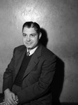 Floyd Hubert is one of the owners of Craftsman's, a new hardware store opening in Fort Worth, Texas. Craftsman's will carry a supply of hunter's ammunition, hardware, sporting goods, and supplies for hobbyists. The new store is furnished with mahogany fixtures and neon lighting. Display islands are used instead of traditional glass counters. Mr. Hubert is pictured here. He is shown standing against a wall, dressed in a suit with a sweater vest. Published in the Fort Worth Star-Telegram evening edition, November 26, 1946.