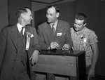 At Fort Worth's North Side High School homecoming event are Sully Montgomery (center), retiring president of the North Side High School Ex-Student Association, Senior Class President Derrell Slater (right), and Principal Ernest F. Sellars.