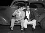 E. F. Stephenson (left) and Burrell Langston sitting on the running board of a car which collided with a Frisco switch engine.