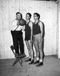 McQuillan, Hub (Coach); Harry, Glenn; Siegelaub, Don; Texas Christian University (T. C. U.); Basketball; Basketball players; Basketballs; Coaches (Athletics); Chairs; Sweatshirts; T-shirts; Shorts