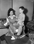 Bill Sims Junior riding hobbyhorse at the Youth Activity Center as Miss Doris Blalock, 14, watches.