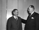 Ed Baker, left, president of Fort Worth Rotary Club, and W. Aubrey Stevenson, of Abilene, Texas, district governor. Both men are wearing suits and Governor Stevenson is wearing eyeglasses.