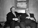 The Texas Sheep & Goat Raisers Association is holding their annual convention in Fort Worth, Texas. Early arrivals, left to right, are Curt Forstmann and J. B. Wilson. Mr. Forstmann is president of the Forstmann Woolen Company in Passaic, New Jersey, one of the largest firms buying Texas wool. He is smoking a cigarette and dressed in a dark suit. Mr. Wilson is wearing a suit. Published in The Fort Worth Star-Telegram Morning Edition December 10, 1946.