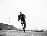 The Odessa High School football team will face off against the Jefferson Mustangs (San Antonio, Texas) in the Texas State Championship in Austin, Texas. One of the key pieces for the Bronchos is workhorse H. L. "Sonny" Holderman. He handles most of the punting duties and backfield blocking. Holderman is shown racing down the field with the football tucked in his right arm. His left is extended, poised to throw a stiff arm. He is dressed in a uniform, number 37. The Odessa Bronchos went on to beat the Mustangs, winning the 1946 State Championship 21-14.