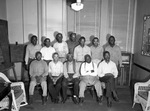 "Star-Telegram Junior" African American staff members are (back row, left to right) Clifton Kimble, Roscoe Brown, Andrew Conroy, Payton Richerson, Harold Tucker, Walter Burrell, Maceo Dodd, (front row, left to right) Will Hamilton, Willie Murray, Louis Phelps, John Woodrow and Willie McCowan. The group of men are shown seated and standing in two rows, some of which are smiling at the camera. These men make up most of the building maintenance crew.