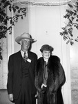 The Texas Sheep & Goat Raisers Association is holding their annual convention in Fort Worth, Texas. In attendance, are Mr. and Mrs. C. Gardner Franks of Rocksprings, Texas. They have been in the business of raising sheep, goats, and cattle all of their lives. Mr. Franks is dressed in a cowboy hat and a three-piece suit. Mrs. Franks is the former Miss Ruth Stevenson, sister to Governor Coke Stevenson. She is wearing a hat, coat, and a fur stole. Published in The Fort Worth Star-Telegram Evening Edition December 11, 1946.