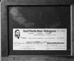 Paid in full. A $2,000 check balance of the purchase price of Bluebonnet Belle, baby hippopotamus bought through the Star-Telegram from Overton Park in Memphis, has been delivered to the Fort Worth board of park commissioners for its endorsement. Photograph of a $2,000 check to pay for "Bluebonnet Belle," a baby hippopotamus. Published in The Fort Worth Star-Telegram Evening Edition November 13, 1946.
