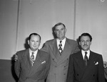 Veterans of Foreign Wars (V. F. W.) officers (from left) Doyle Willis, C. L. Bridge and Doctor C. M. O'Neal. The men are standing against a blank wall, all wearing double-breasted suits.