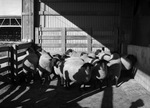Thirty-eight Suffolk sheep purchased by Ralph Pembrook, at Big Lake, Texas. The sheep are standing in an animal pen.