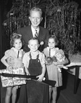 All-Church Home Lions Club Christmas party has O. G. Carlson with 3 orphans (from left) Edna Carlson, Raymond Earl Bland and Toni Cason.