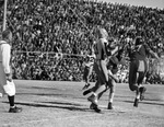 The Texas State high school semifinal game is being played Saturday afternoon in Odessa, Texas. Competing for a berth into the finals are the Highland Park Scots and the Odessa Bronchos (dark jerseys). In the first quarter of the game the Scots' passer, Fred Benners, threw a quick pass to Bob Draper (21). Draper is shown catching the football in the end zone for the Scots' first score. The Bronchos defenders are Glenn Taylor (10) and Byron Townsend (27). The touchdown earned the Scots a short-lived 6-0 lead. The Odessa Bronchos went on to win the game 31-13 and win the state title.