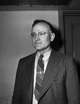 R. R. Howerton. Mr. Howerton is shown standing in front of an empty wall and a door. He is wearing a dark suit with a pair of eyeglasses and a diagonally striped tie. He appears to be looking to his right.