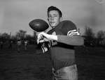 The Odessa Bronchos are preparing for the 1946 Texas High School Football State Championship. They will square off against the Jefferson Mustangs (San Antonio, Texas) on December 28, 1946 in Austin, Texas. One of the bench players for the Bronchos is Paul Matejowski (32). He is the first substitute for quarterback Hayden Fry. Matejowski, a good passer, is shown throwing the ball downfield in practice. He is dressed in a football uniform. The Odessa Bronchos went on to beat the Mustangs, winning the 1946 State Championship 21-14.