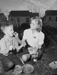 L. H. Iwan children Richard (left) and Gladys Marie are picking strawberries.