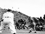 Football; Football players; Football Uniforms; Football Games; Football Fields; Crowds; Fans (Persons); Bleachers; Grandstands; Stadiums; Referees