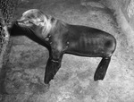 "Wanda", a female seal at the Forest Park Zoo in 1946 is pictured here. She is shown standing near the fence. The bright eyed pet is temporarily located in the monkey house regaining some of the pounds she has lost. In 1947 she hopes to go back home. Published in the Fort Worth Star-Telegram evening edition, January 1, 1947.