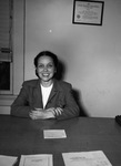 Hart, Murry (Mrs.); Coats; Desks; Documents; Office workers