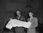 Mrs. Carl Parsons, florist, presenting floral pistol to sheriff, Sully Montogomery.