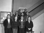 Armour and Company is celebrating employees with 25 years of service in the meat packing industry. Being presented with silver buttons, left to right, on the front row are Ollie L. Majors, D. B. Sanders, J. H. Cosby, and Alton Gilley. On the middle row are S. E. Odom, A. B. Tidwell, O. R. Huff and Lon Stephenson. On the top row are Jesus Saenz and Eulogio Barrone.