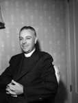 Reverend W. Landless Shannon has been named new rector of Saint John's Episcopal Church. He will take over the position on March 2, 1947. Reverend Shannon is shown sitting on a chair, dressed in his clerical clothing.