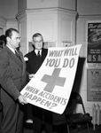 Red Cross First Aid Campaign Doctor W. J. Danforth (right) and Roy E. Kneip studying a poster.