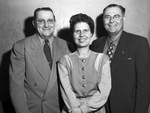 The Fort Worth Anglers Club elected new officers at a recent meeting. They will be installed February 6, 1947, during a dinner at the Colonial Country Club. Pictured, left to right, are H. D. Harris, Mrs. Ed Cromer, and Bob Bigley. Mr. Harris, president, is dressed in a double-breasted suit. Mrs. Cromer, secretary-treasurer, is wearing a button-up blouse. Mr. Bigley, vice president, is dressed in a dark suit.