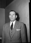 Abb Curtis is a military veteran. He served in the Army Air Forces during World War II as a private. Mr. Curtis is shown standing against a wall, dressed in a three-piece suit with a handkerchief in the pocket.