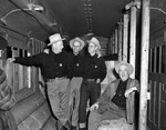 Dalby, Delbert; Wiggins, John; Foster, E. H.; Killough, V. W.; Will Rogers Range Riders; Railroad trains; Railroad cars; Cowboys; Hay bales; Jester, Beauford (Gov.); Railroad travel