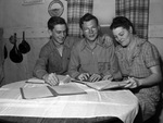 Fraser, Claude; Woods, Douglas; Woods, W. R. (Mrs.); Students; Graduates; Final Exams; Studying; Textbooks; Dresses; Blind persons