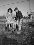 Oak Lawn Junior Garden Club members Max Chapman (kneeling), Bobbie Joe Labhart (right) and Patsy Morgan planting rose bushes.