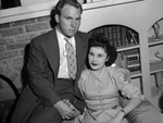 Miss Nita Gene Taylor married Benny Graham Clark in Fort Worth, Texas, on January 10, 1947. The newlyweds are shown sitting together on an armchair. Mrs. Clark is the daughter of Mr. and Mrs. Woodie Taylor. She is a former student at North Texas Agricultural College (N. T. A. C.). She is wearing a button-up blouse and a skirt. Mr. Clark is the son of Mrs. R. B. Dakin and Mr. B. O. Clark. He spent two years with the United States Army and served in the European Theater. He is dressed in a pinstripe suit.