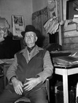 Hugh L. Small is a judge in Tarrant County, Texas. He is shown sitting at a desk inside his home office. Judge Small is dressed in a hat, collared shirt, sports coat and trousers. Stacks of papers are piled on his desk and pinned to the walls.