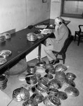 Detective H. J. Cobb is spending his day off at the police station. He is tracking down the hub cap thieves plaguing Fort Worth, Texas. Detective Cobb is sitting in a room with nearly 100 stolen hub caps. He is shown talking on the phone and writing on a notepad. He is dressed in a collared shirt, jacket, and trousers.