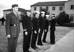 Five veterans of Pacific combat during World War II are being presented with awards for their service. All five men are patients at the United States Public Health Service (U. S. P. H. S.) Hospital. They are, left to right, Marine Sergeant Jack R. Williamson, Lieutenant James Donald Mason, Aviation Machinist's Mate Harry Willis Leaming, Machinist's Mate Dwain Irving Passow Junior, and Seaman First Class Winfred Earl Lewis. Presenting the awards at the far right is Captain E. D. McMorries. Sergeant Williamson is wearing his Marines' uniform. The other five men are dressed in Navy uniforms. Published in The Fort Worth Star-Telegram Morning Edition January 24, 1947.