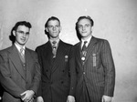 The Fort Worth, Texas, chapter of the Order of DeMolay will hold a public installation of its officers Sunday at the Polytechnic Masonic Lodge. Officers to be installed, left to right, are Jimmy Lyon, Vernon Brown Junior, and Mark Korolevich Junior. Mr. Lyon, senior councilor, is dressed in a three-piece suit. Mr. Brown, master councilor, is wearing a double-breasted pinstripe suit. Mr. Korolevich, junior councilor, is dressed in a pinstripe suit.