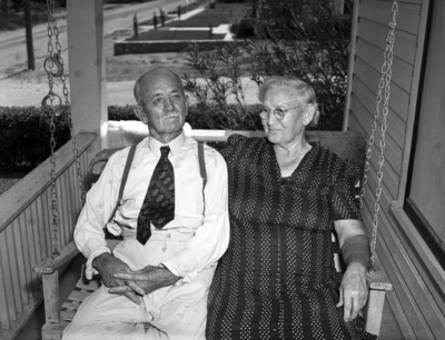 Porches; Porch Swings; Spouses; Anniversaries; Rountree, J. A.; Rountree, J. A. (Mrs.); Family Reunions; Dresses; Neckties; Suspenders