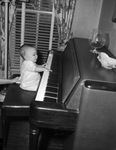 Six-month old Sammy Withers is shown in attendance at his great-grandparents' golden wedding anniversary celebration. He is the great-grandson of Doctor and Mrs. C. E. Walker. Sammy is pictured sitting at a piano, tapping a few keys.