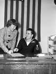 Yeoman First Class J. H. Allison and Miss Virginia Brown were reunited at the United States Courthouse when the sailor re-enlisted. During the war, Miss Brown was a member of the Women Accepted for Volunteer Emergency Service (W. A. V. E. S.). The pair previously met in Hawaii when Allison's submarine crew mates honored the arrival of a group of W. A. V. E. S. which included Miss Brown. Miss Brown is wearing a plaid blazer and a skirt. Allison is dressed in his military uniform.
