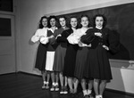 Fort Worth High School cheerleaders include (from left) Jean Anderson, Lucy Von Spradley, Betty Lou Reeves, Ysleta Leissner, Pauline Adams and Lou Ann Fowler.