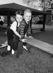 Fort Worth Day Nursery children Kelly Howard (left) and James Bryan on a see-saw.