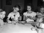 Fort Worth Day Nursery students George Anderson and Marylin Morris building with blocks.