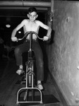 Golden Gloves boxer James Fulkerson exercising on a stationary bicycle